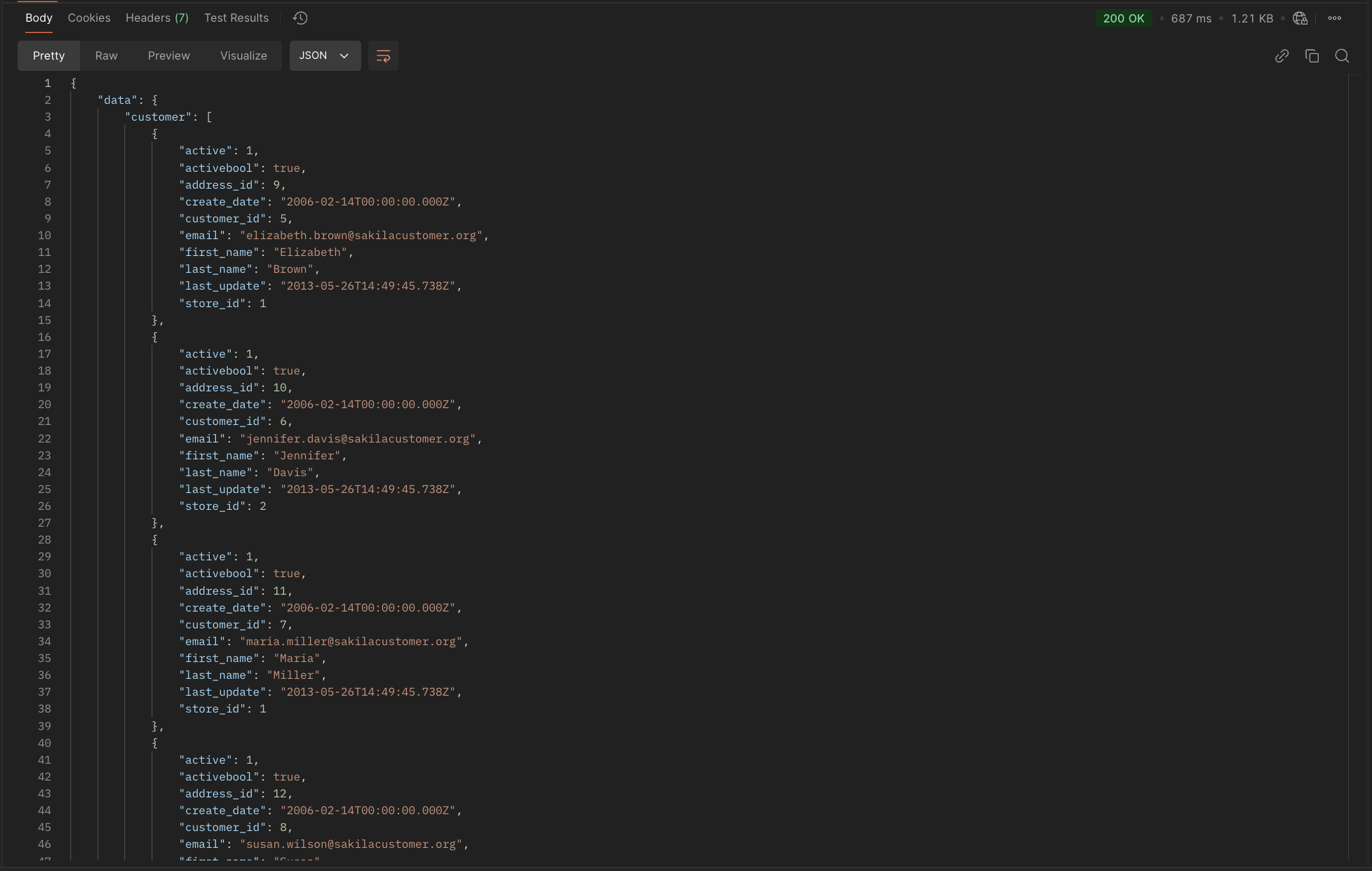 Now you should get a response which skips the "offset" number of rows specified earlier (here it skips the first 3 rows)